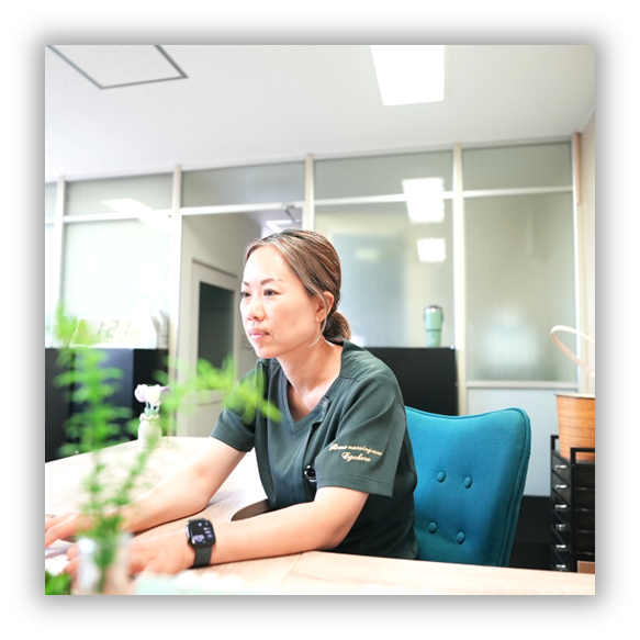 看護師が看護の提供をするのは当たり前、それに加えて笑顔・笑う機会をお届けすることを大切にしています。私自身も利用者さんの笑顔にパワーを頂き、また次の利用者さんへお届けする、そんな正の連鎖をずっと続けていきたい、そして「住み慣れた場所でこれからもずっと」と誰もが当たり前に感じることを当たり前に望めるように、そのための存在となるべく日々邁進してまいります。